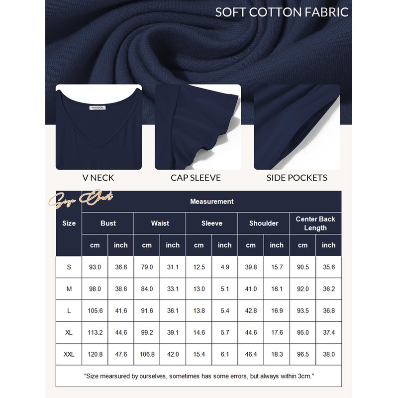 HOTOUCH Summer Cotton T-Shirts Dresses for Women Casual Swing Dresses with Pockets V Neck A Line Swing Dress Ruffle Hem Tunic Dresses Navy Blue X-Large