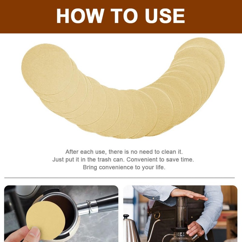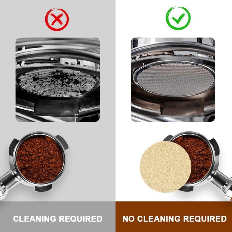 The filter paper is also compatible with the base of the portafilter which filters out excess coffee powder and improves the taste (Attention: please check the size of the portafilter base before purchasing).