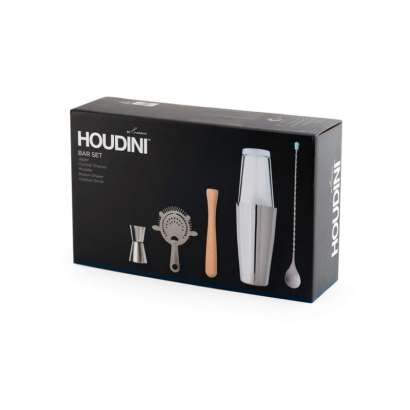 Houdini 5-piece Bar Tool Set, Includes Jigger, Muddler, Cocktail Stirrer, Boston Shaker and Strainer