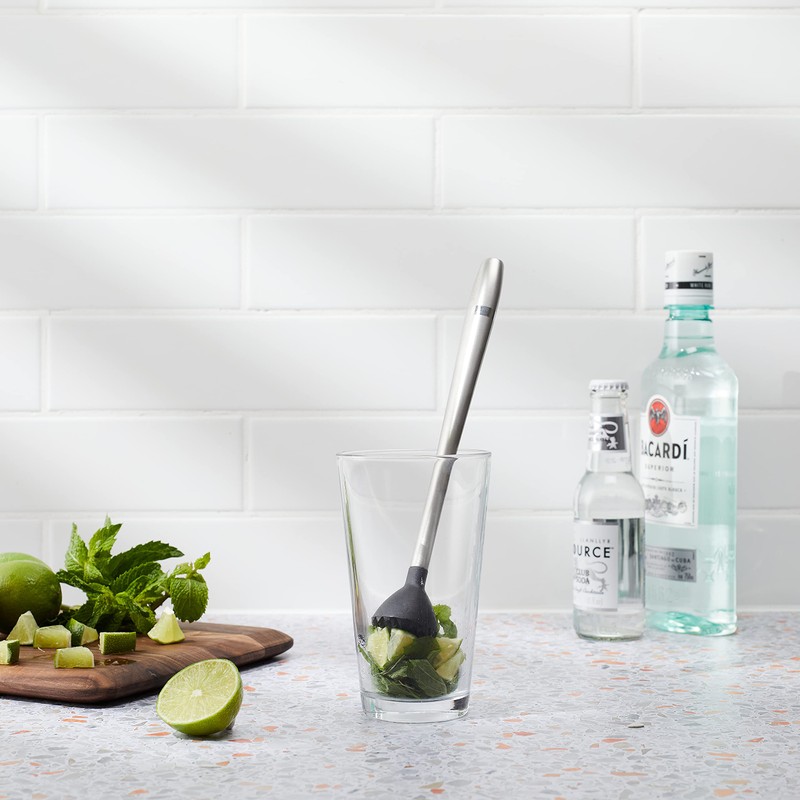 - MODERN DESIGN: The muddler's long handle is designed for crushing leaves at the bottom of a tall mojito glass.