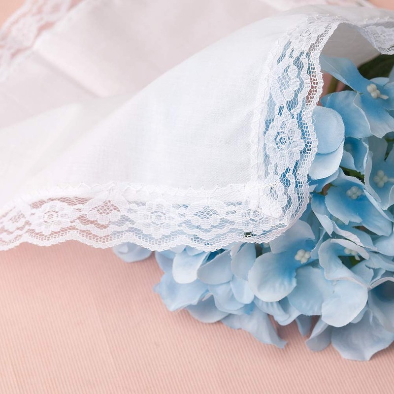 - ❀QUALITY MATERIAL&HEM❀ Size: 10x10"/25x25cm; Excellently crafted from 100% premium 60S COTTON which makes hankies softer, more durable and absorbent. Our hankies with DAINTY STITCHES and FLAT SEAMS are not easy to unravel. ▲ Lace is made of polyester fiber rather than cotton.