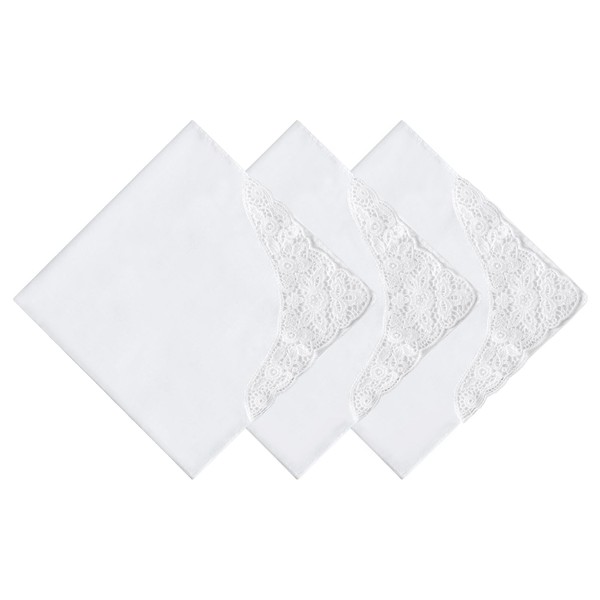 HOULIFE Women's Fabric Handkerchiefs - Large Handkerchief Wedding, Fabric Handkerchiefs Made of Combed Cotton Soft White Flowers Embroidery with Lace, 3/6 Pieces, 43 x 43 cm, White (white 3)