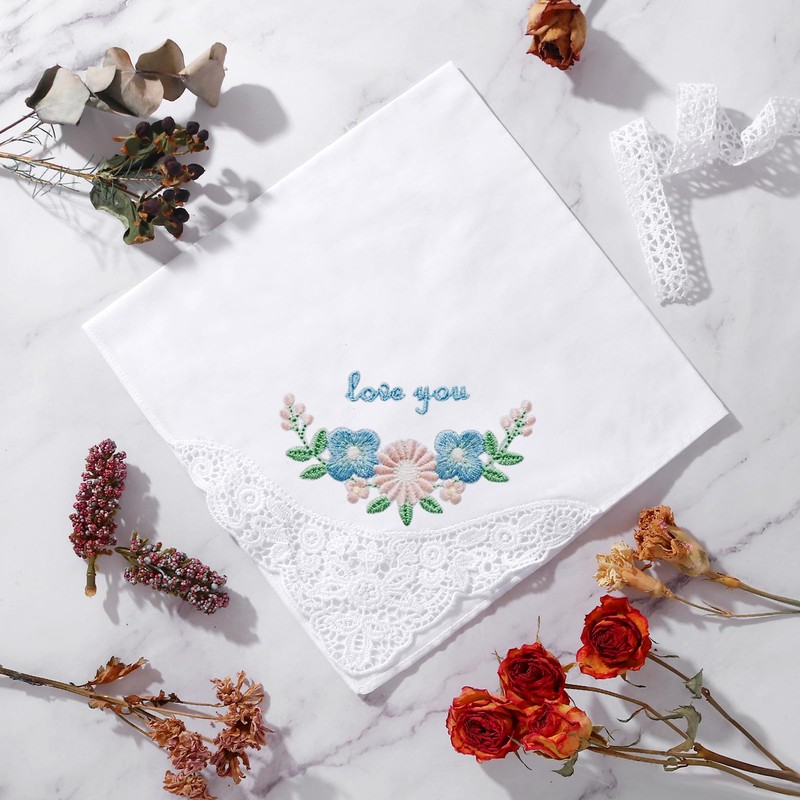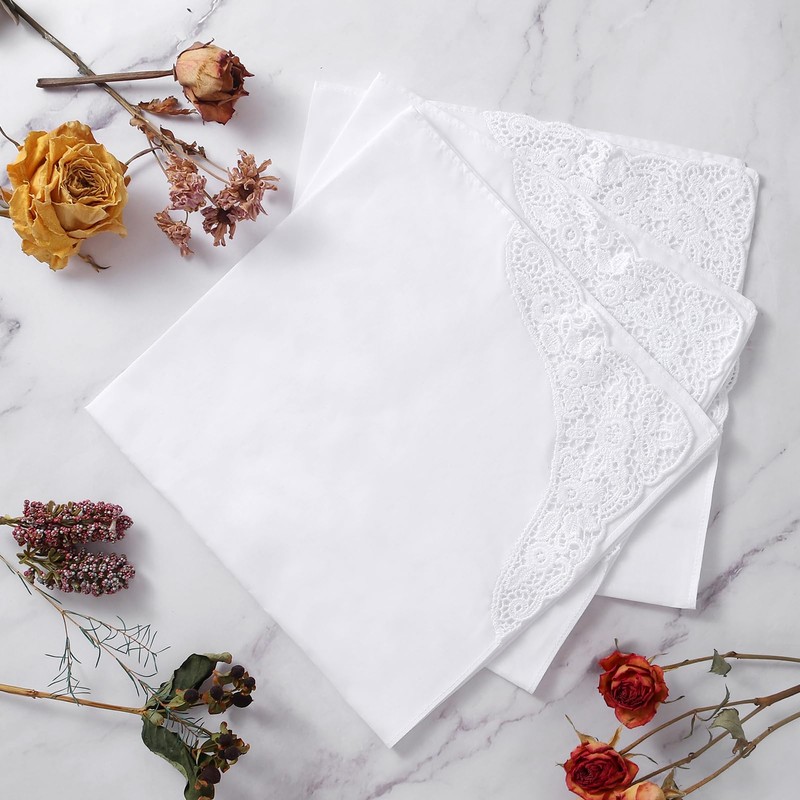 - High-quality women's handkerchief, 43 x 43 cm / 16.93 x 16.93 inches. Superbly crafted from 100% premium 60S combed cotton (exclusive lace and bouquets), making handkerchiefs softer, smoother, more durable and wrinkle resistant than conventional cotton. ▲ Note: Due to manual measurement, there is an error of plus or minus 0.20 inches/0.5 cm.