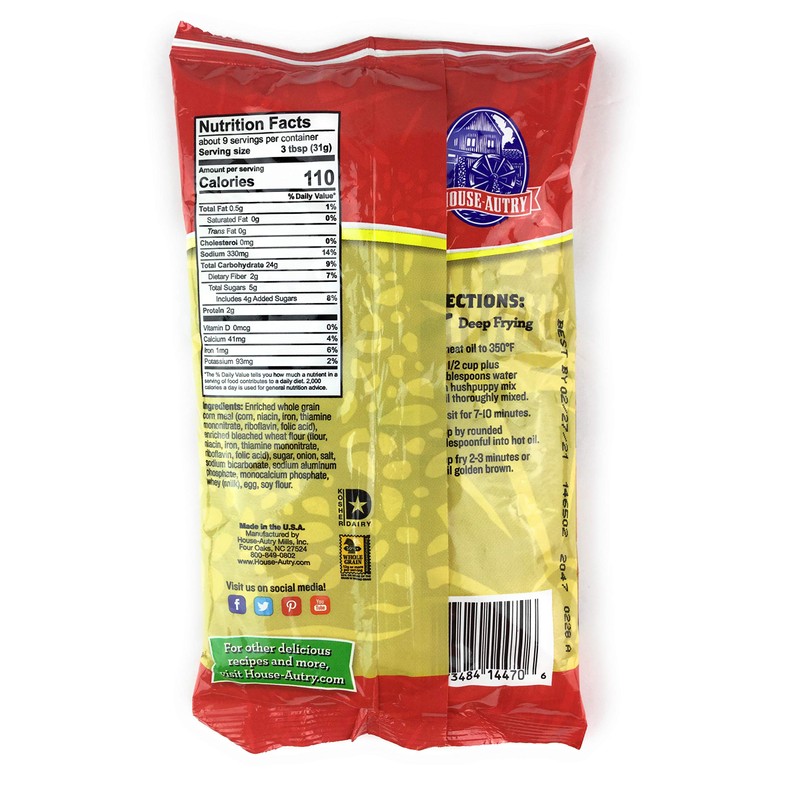 • House Autry Hushpuppy Extra Sweet Onion Mix 2 Pack Of 10 ounce Bags.