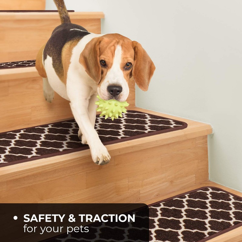 - SKID-RESISTANT - House, Home and More Skid-Resistant Carpet Stair Treads are made with a premium, skid-resistant rubber backing to help create a non-slip surface for your family, guests, dog and other pets