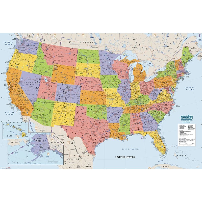 States Map, with Write on/Wipe off feature, wipes clean with a damp cloth.