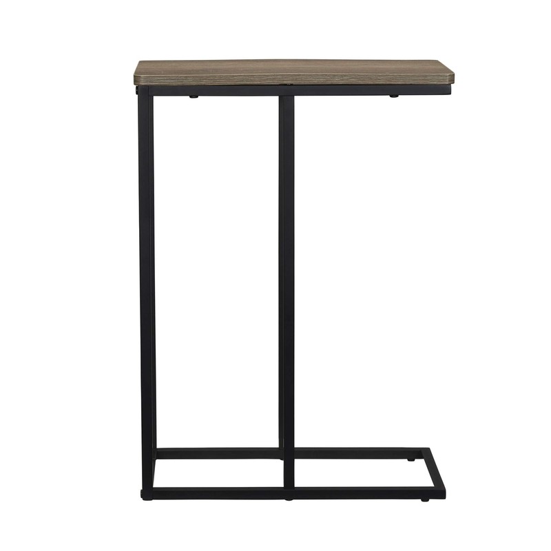 This modern side table’s simplistic style and versatility are perfect as a workspace or additional surface area for your living room, lounge area or office space. The faux weathered woodgrain surface complements the black frame, making an attractive addition to your furniture set. The C-shaped design gives this side table a unique functionality. It can be used as the traditional table next to any chair, but you can also angle it over the arm of the couch or your lap for a closer tabletop surface. This will bring the table’s surface closer to you, adding an element of convenient accessibility. The 4-leg support system adds extra stability while maintaining a minimalist style. This side table can be used in any seating area of the home. Use the table to enjoy dinner and a movie with family, work from home on your laptop or finish homework from the comfort of your couch. It can also be used as a corner table to showcase decorative accents such as pictures, house plants and other items. The compact nature of the C-shaped design allows you to push the table’s legs under the couch or chair, which, in addition to bringing the table closer, frees up more walking space around your furniture. This feature is wonderful for smaller homes such as apartments, duplexes and townhouses.