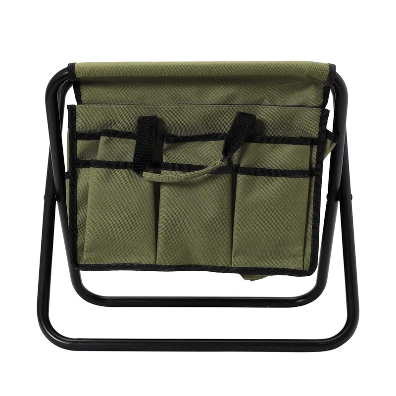 - This versatile utility stool showcases a solid steel frame, durable canvas seat, and multiple storage pockets for gardening tools and other household items