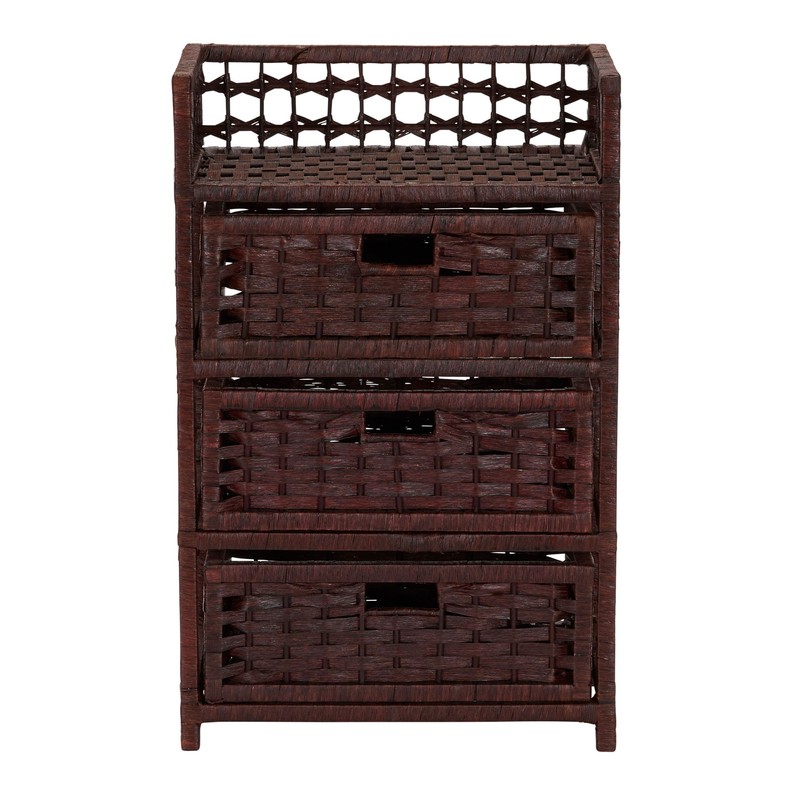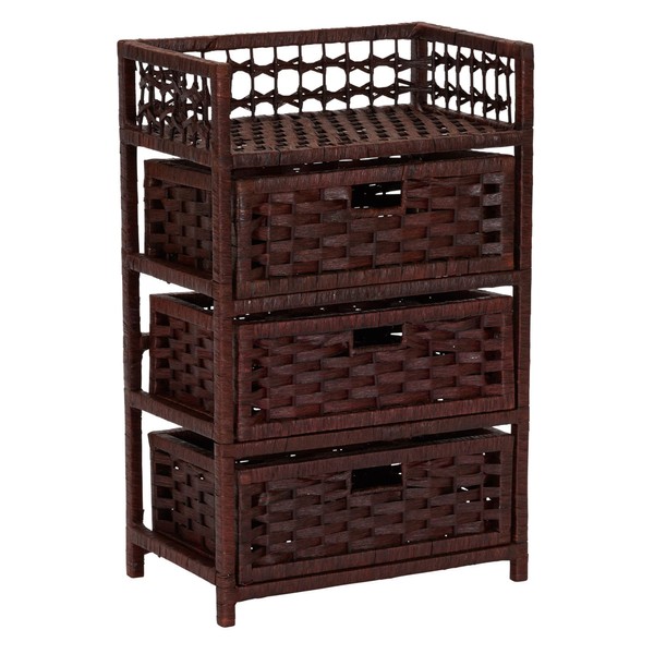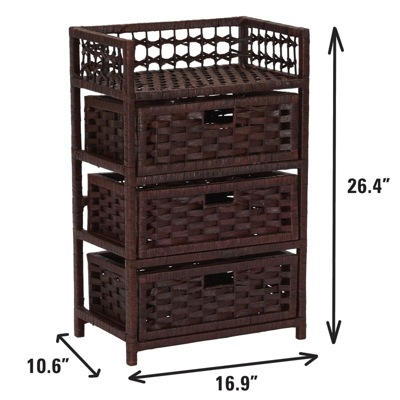 Household Essentials Hand-Woven Paper Rope 3-Drawer Chest, Dark Brown Stain