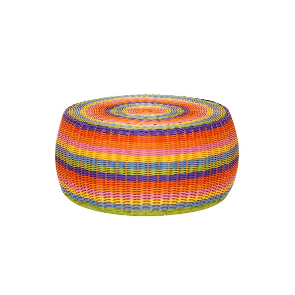 • This cheerful resin woven storage stool is a fun and versatile way to introduce a functional pop of color in your living room, outside patio, bedroom and more