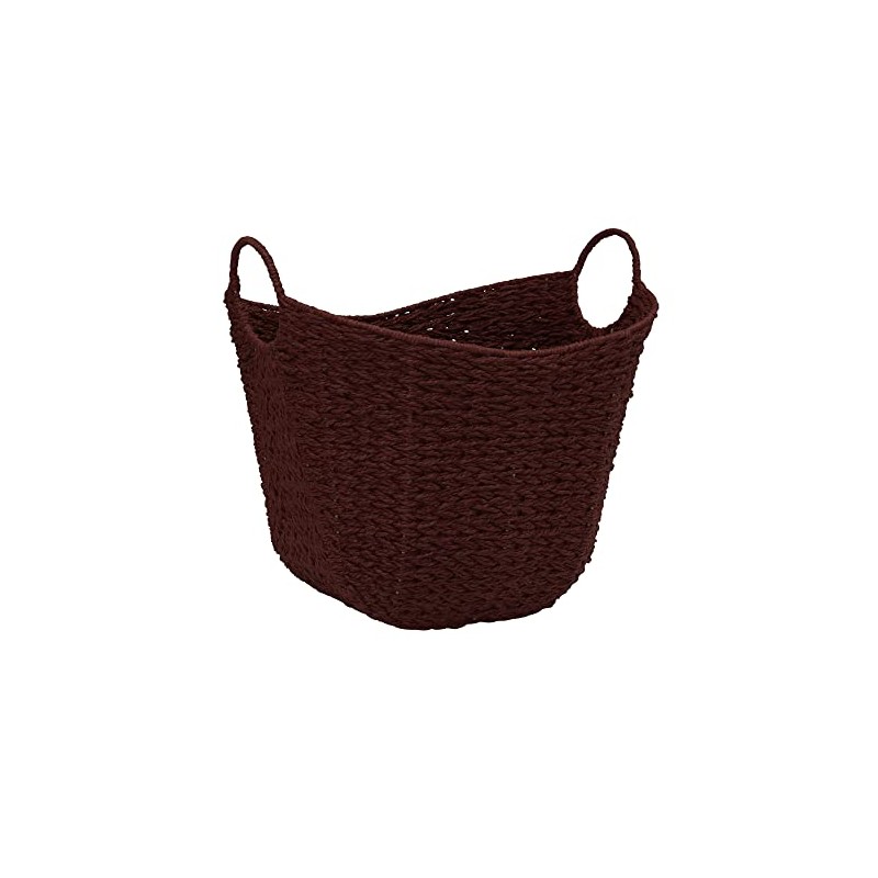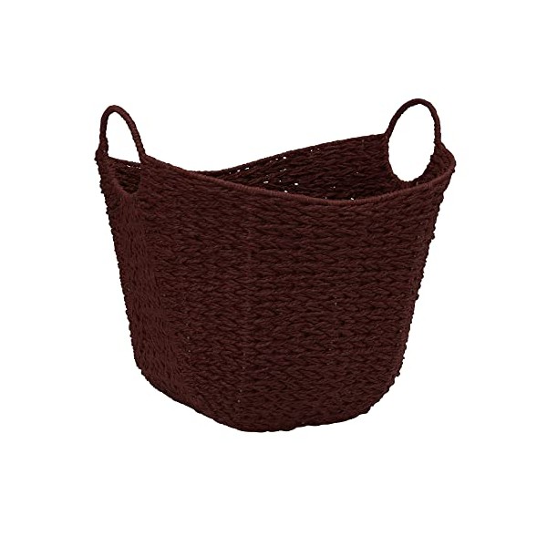 Household Essentials Natural Woven Wicker Storage Handles Basket, Burgundy