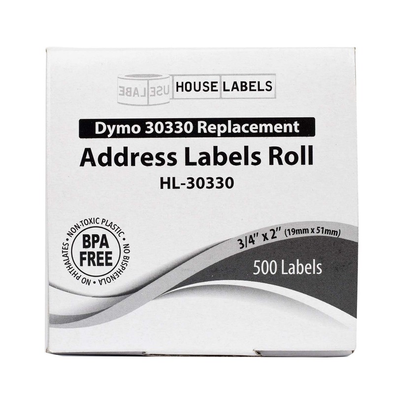HOUSELABELS Compatible DYMO 30330 Address Labels (3/4" x 2") Compatible with Rollo, DYMO LW Printers, 1 Roll / 500 Labels per Roll