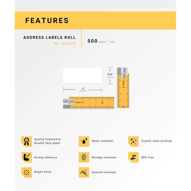 - 30330 address labels (HL-30330) are slightly smaller than the standard (1-1/8” x 3-1/2”) HL-30252 address label and can be used for a number of different office and home labeling applications including return address labels, barcodes, product identification and much more.