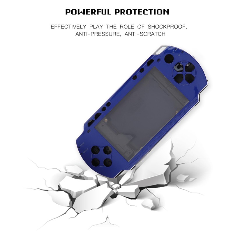 Housing Cover Replacement Full Shell Housing Set, Back Non-Slip Design Shockproof Antipressure Anti-Scratch Replacement Shell for PSP1000 with Button Set (Blue)