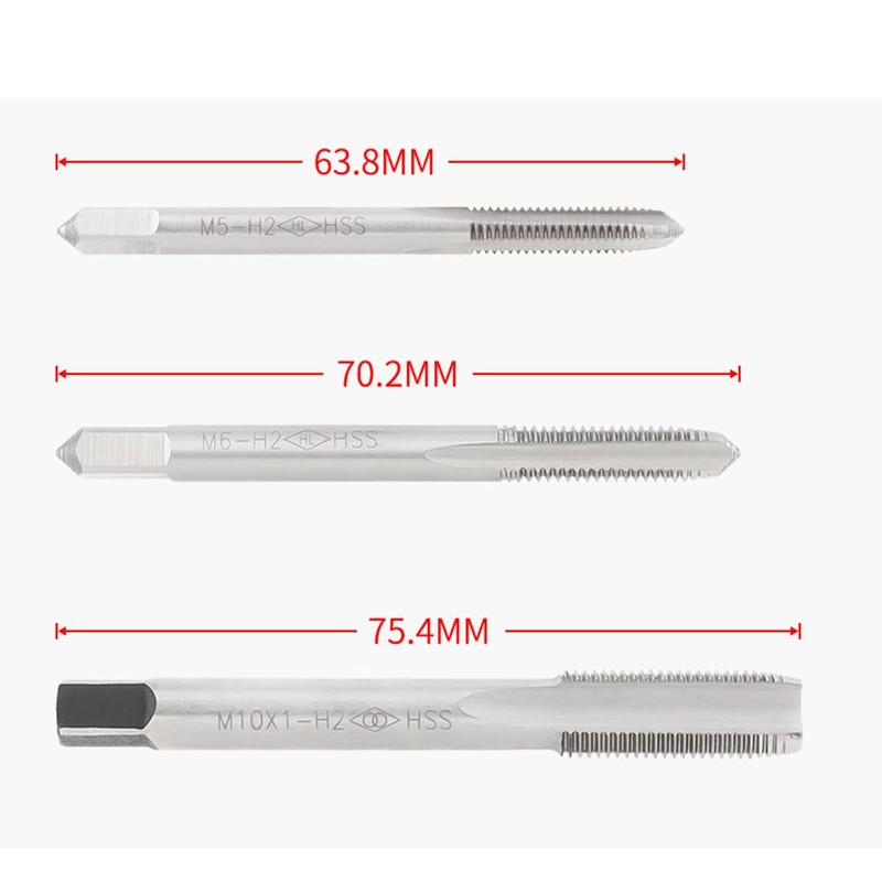 - 【Precision repair】 Effectively repairs damaged threads and removes dirt particles - ensures smooth screwing and prevents thread stripping (dimensions: M5 63.8x3.9x3.6mm / M6 70.2x4.9x4.5mm / M10 75.4x6.3x7.7mm).