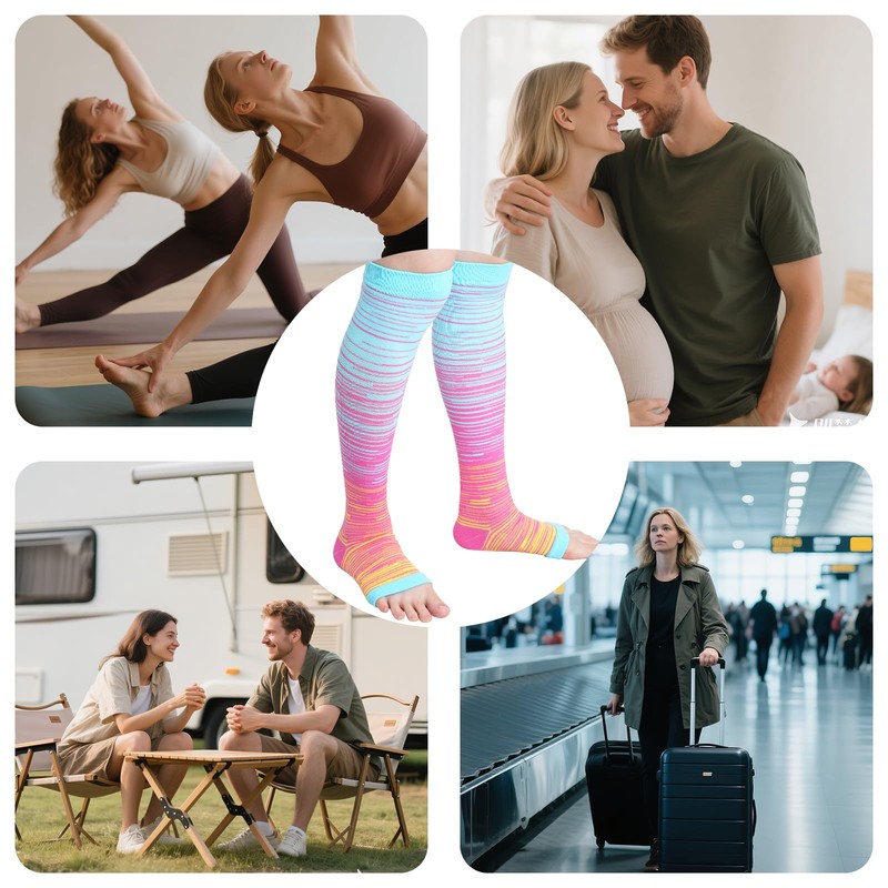 - Wide Occasions: The open toe compression socks can restore muscles and enhance leg health. Open toe compression socks are suitable for various occasions, such as running, skipping rope, cycling, and outdoor sports.