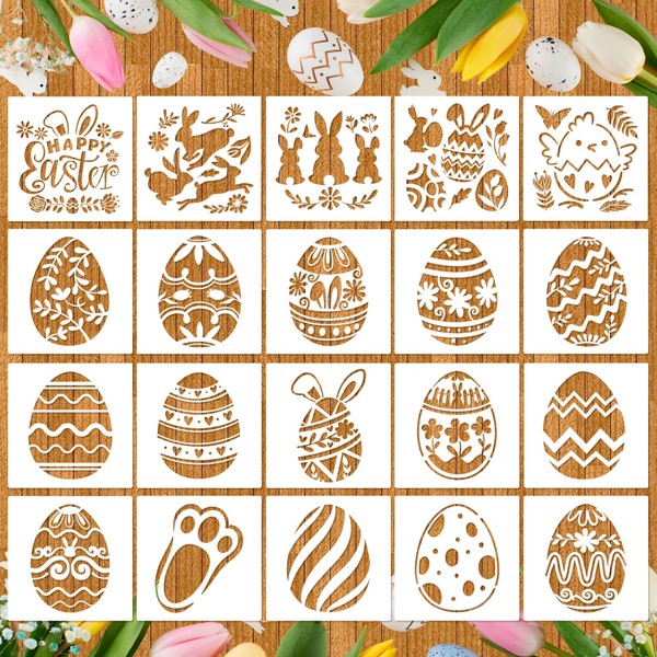 - 【Easter Stencils for Crafts Reusable】 You will get 20 Pcs Easter Stencils set in different Easter theme patterns, nice size of 14.8 x 14.8 cm / 5.8 x 5.8 inches. Our Easter painting stencils are enough for you to serve as little ones’ crafts, DIY home decor, wall art, and Easter party setups.