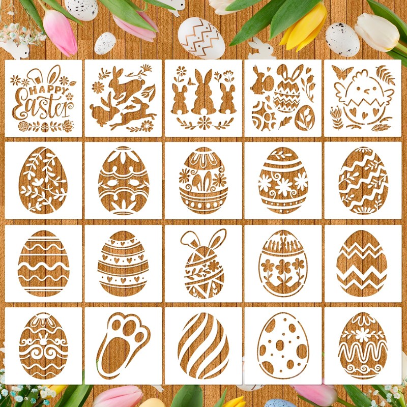 Transform your Easter celebrations with this 20-piece reusable stencil set, designed From classic Easter eggs and bunny footprints to playful paint patterns (eggs, bunnies, whiskers, floral accents), this kit covers every festive need! Whether you’re decorating eggs, painting walls, or hosting a themed party, these stencils offer professional results with minimal effort.