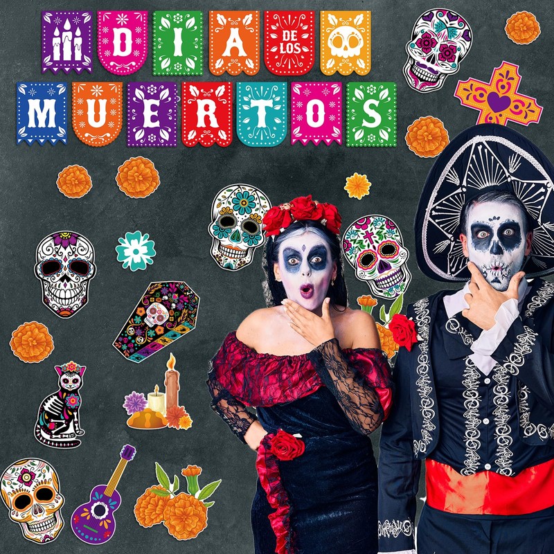 - Buy with Confidence: Any problem of our Day of The Dead cutouts bulletin border decorations please feel free to tell us. These Day of The Dead cutouts are suitable for classroom blackboard, home wall, windows, front door decoration and more.