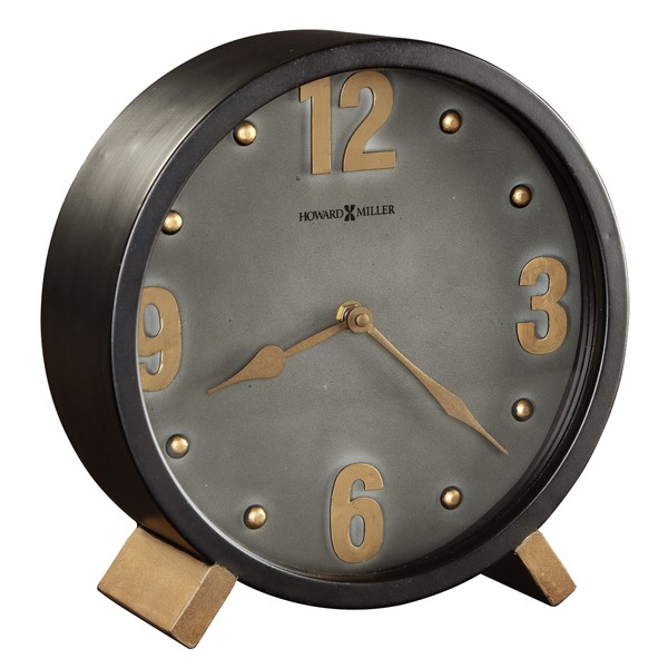Howard Miller Elmer Mantel Clock 635-244 – Aged Black Finish, Metal Material, Charcoal Finished Dial, Gold Arabic Numerals, Battery-Operated Quartz Movement, Tabletop Clock