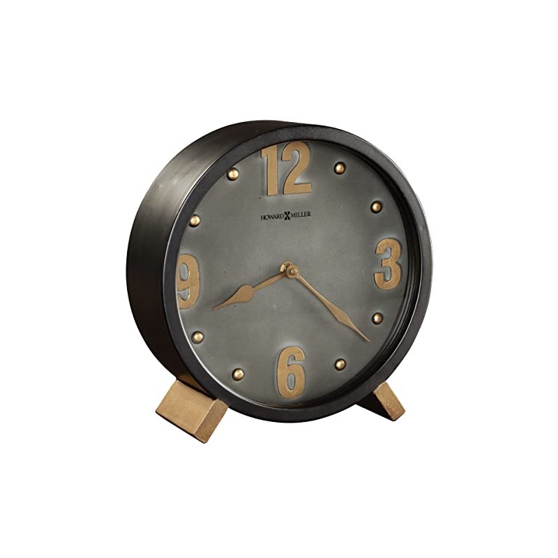 - ATTRACTIVE DESIGN & FINISH, The aged black finish of this decorative clock complements the rest of your home décor items and furnishings. The clock is supported on two rectangular metal feet that are finished in aged gold.