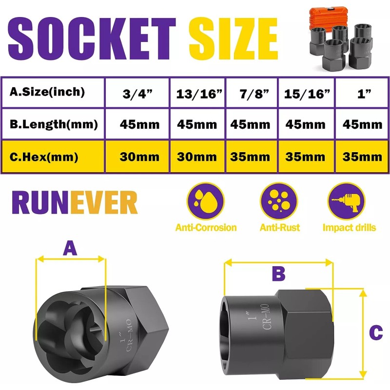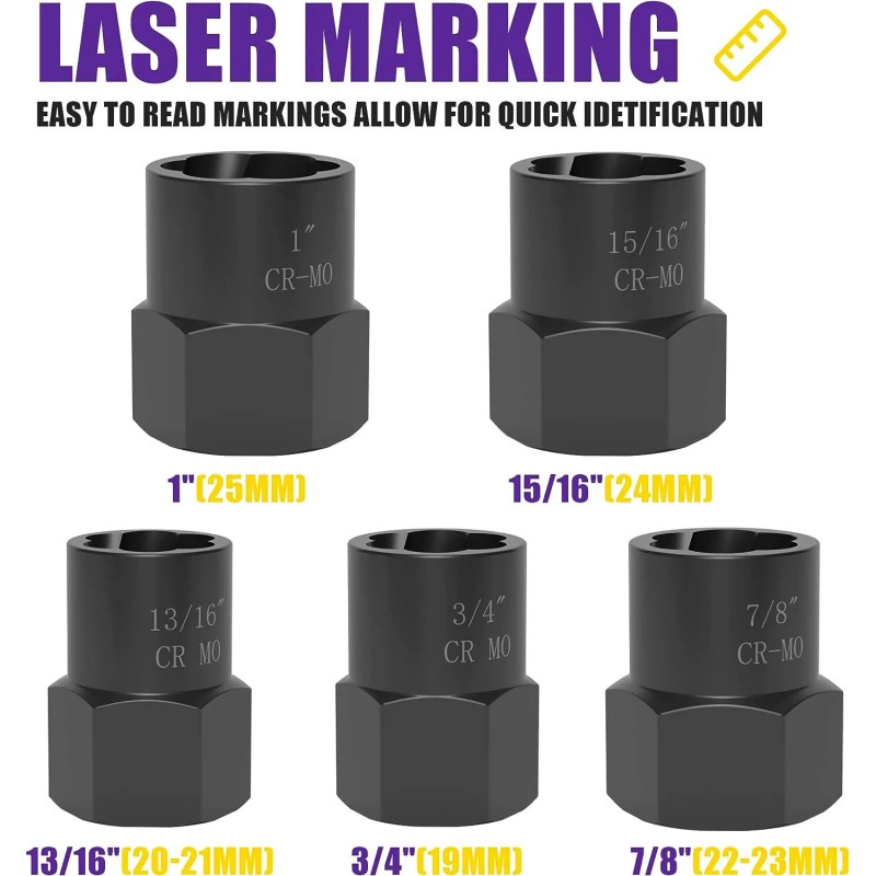 Howbow Impact Bolt Extractor Set Nut Remover Set Stripped Extraction Socket Tools 5PCS