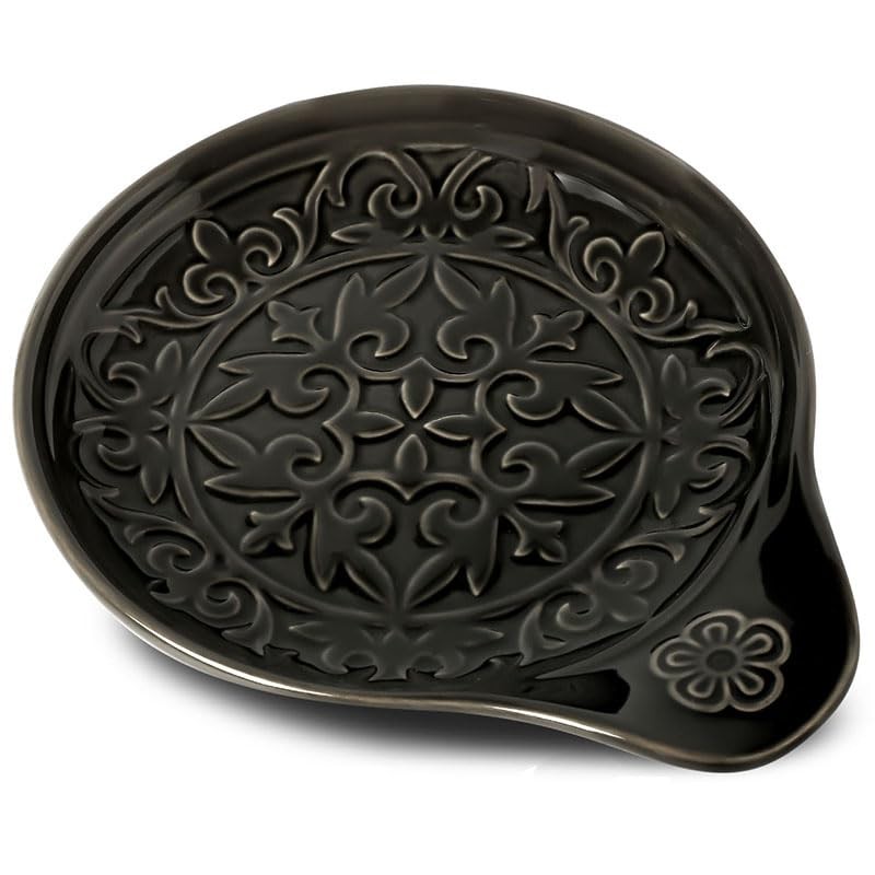 Howise Farmhouse Ceramic Spoon Rests Holder for Kitchen Counter Stove Top (Black-A4)