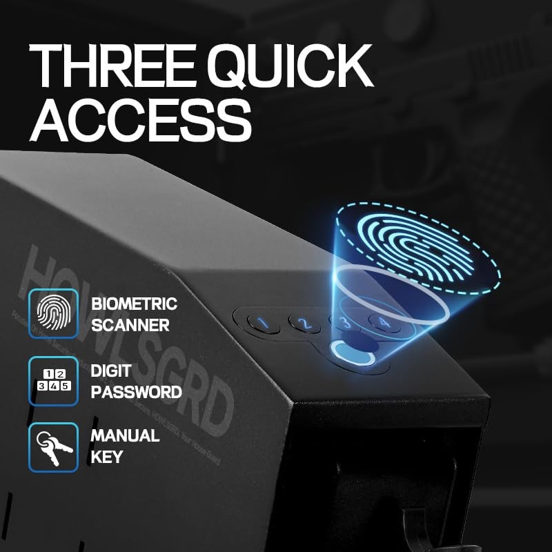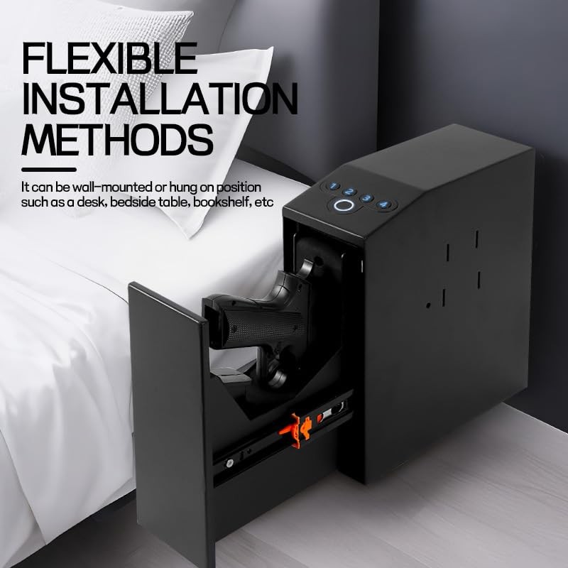 HOWLSGRD Biometric Slider Gun Safe Box for Handgun pistol,wall-mounted on Desk Nightstand with Fingerprint, PIN Code, KEY Access