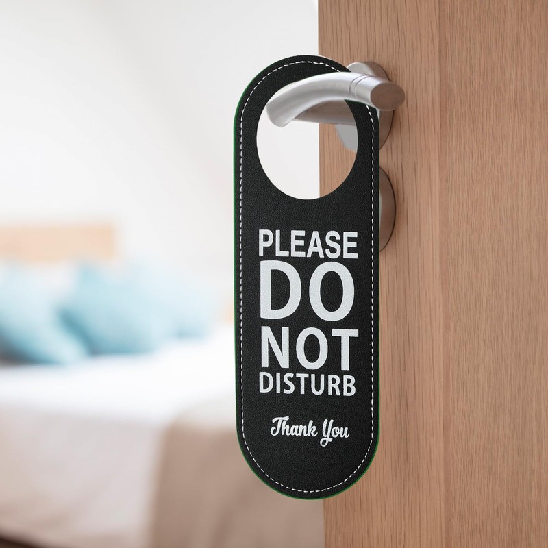 - Durable PU Leather Material: The do not disturb signs are made of thick PU leather and stitched with fine and delicate craftsmanship. They are sturdy and durable, waterproof and stain resistant, bright and visible, ideal for home, office, hotel.