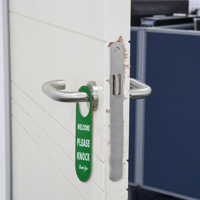 - Easy to Read: Double sided design, Black or Red side printed with "PLEASE DO NOT DISTURB" and Green side is "WELCOME PLEASE KNOCK"; White text, font style is easy to read and the design style is modern with the creative usage of colors. Simply flip the sign around depending on your need at that time to stop people from entering the room or to proceed by knocking first.