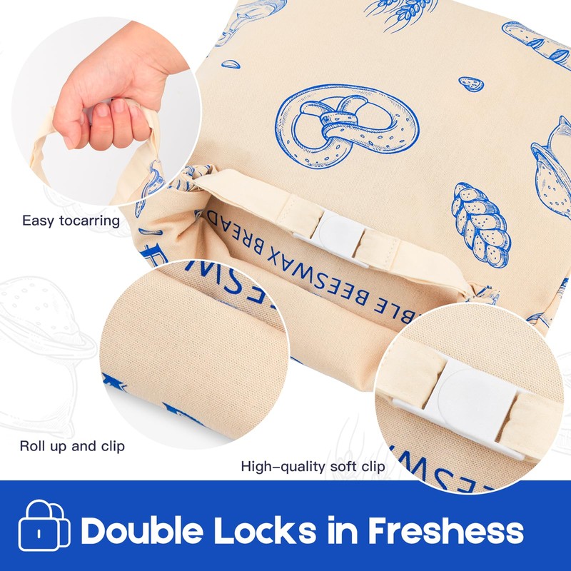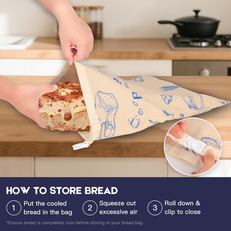 - Ideal for storing organic bread, whole grain bread, and bread crumbs. The food-grade inner lining ensures safety, while the easy-to-clean design makes it perfect for sandwich bags, cookie bags, and shower caps for sourdough bread.
