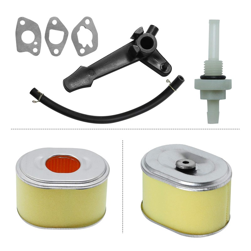 - Package Included: 1 x carburetor, 3 x gaskets, 1 x insulation board, 1 x three cable switch, 1 x choke level, 1 x air filter, 1 x fuel line with clips, 2 x fuel filter, 1 x fuel gas tank joint filter, 1 x oil sensor, 1 x spark plug. As shown in the pictures