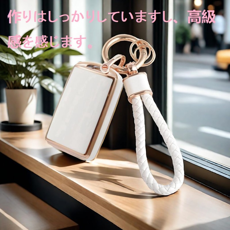 HOYZE Key Case, Key Cover, Cute, Car, Smart Key Case, Braided Leather, Key Chain, Carabiner, Key Shell, Lightweight, Scratch Resistant, gold white