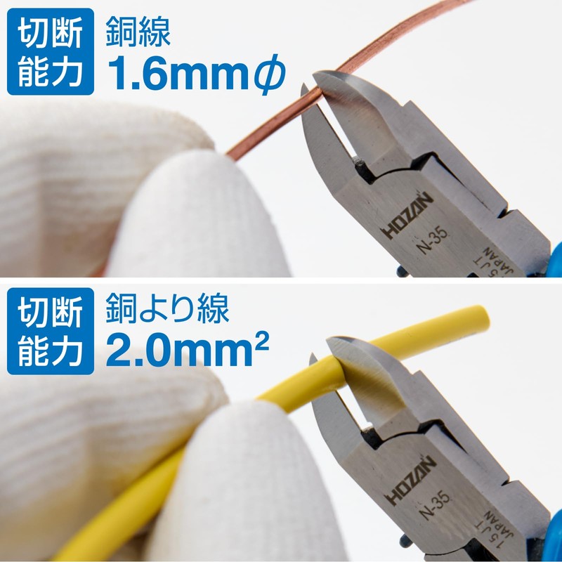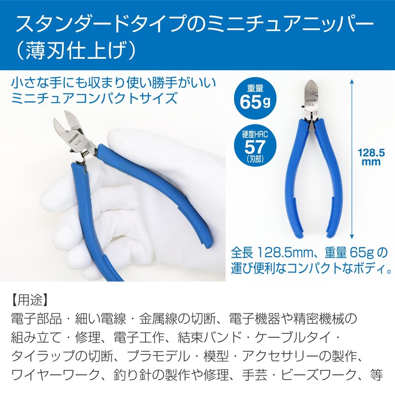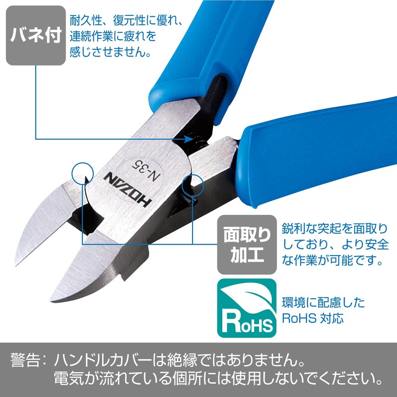 ホーザン(HOZAN) ミニチュアニッパー 銅線の切断に(薄刃仕上げ) 切断能力:銅線 1.6mmφ、銅より線 2mm2 N-35