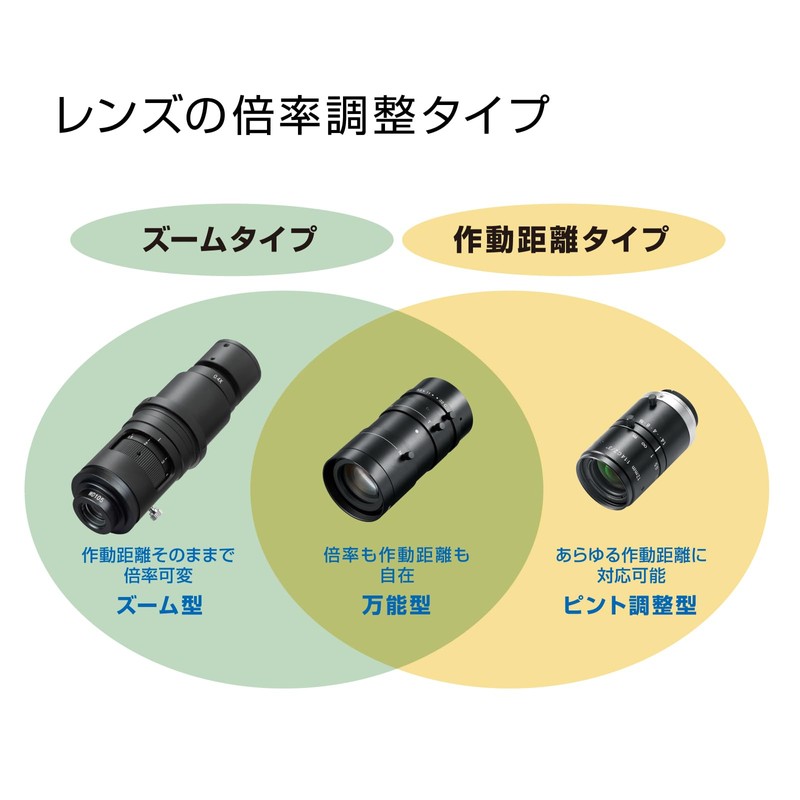 • Since the focal length (16mm equivalent), it is a lens that can change the working distance and adjust the magnification