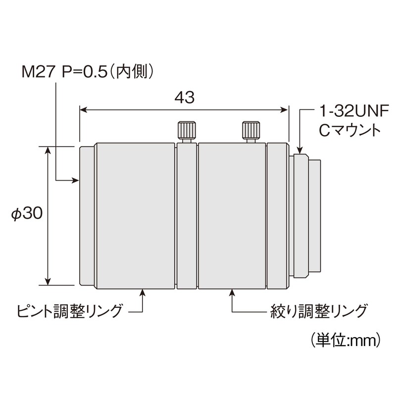 Hozan Lens, Focal Length (Equivalent to 0.6 inches (16 mm) Fixed, Change Working Distance to Adjust Magnification, C-Mount, Working Distance: 3.9 - 8 inches (100 mm) - ∞ L-600-16