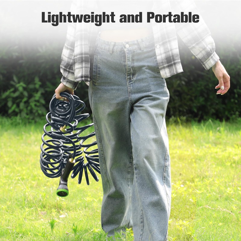 - Compact and Portable:This small garden hose features a coiled design with excellent rebound memory, allowing it to automatically roll back after use. Not only does it save time and space when storing, but it can also be easily carried to any corner, making your gardening life simpler and more efficient