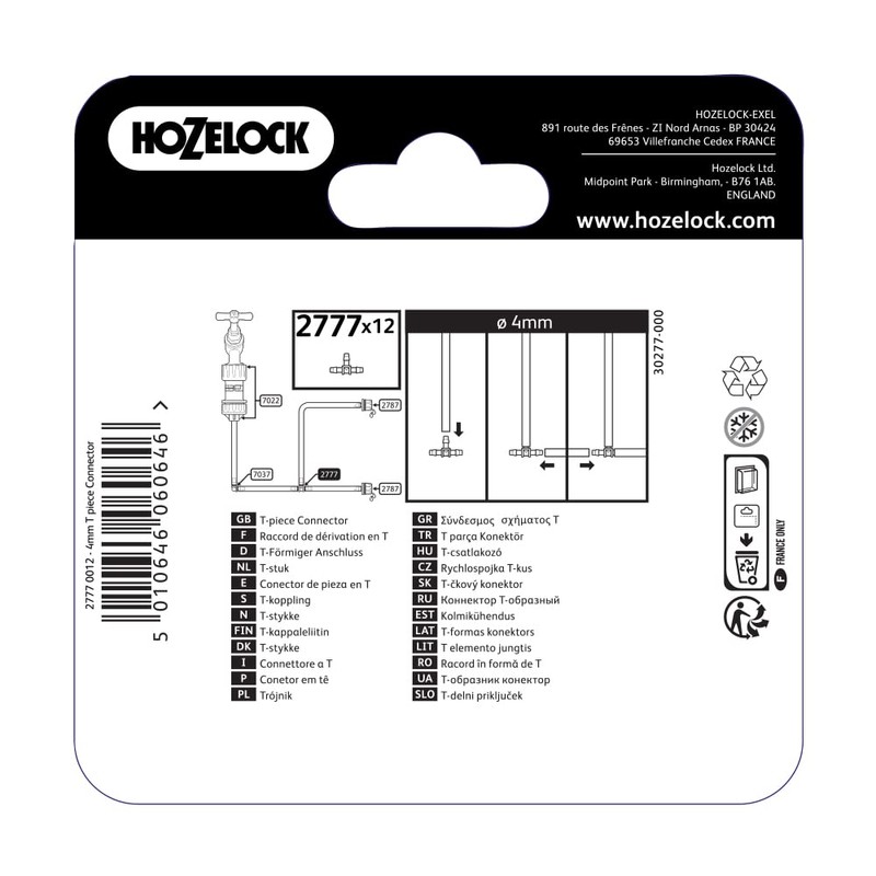 Hozelock T Piece Connectors 4mm (12 pack)