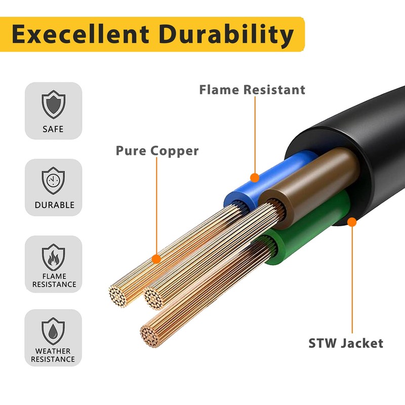 - Built to Last: The 220v to 110v adapter cord made of 10 AGW x 4C all-copper wire for excellent conductivity; with a high-density PVC jacket can withstand multiple bends without breaking; 1.5 feet is usually sufficient for most needs