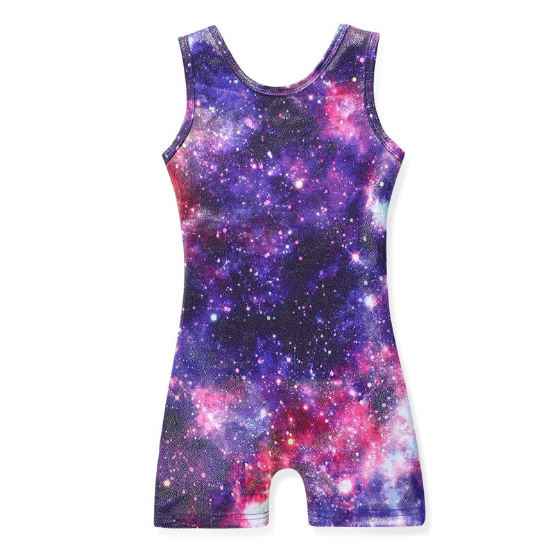 HOZIY Girls Gymnastics Leotards With Shorts for Kids 2t 3t 2-3t Biketard Outfits Purple Galaxy Sparkle for Toddler Girls