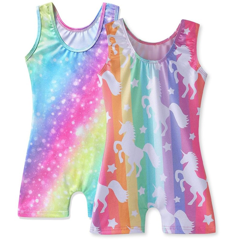 HOZIY Gymnastics Leotards for Girls with Shorts Toddlers Biketards Rainbow Unicorn Dinosaur Mermaid Leopard Flower Galax