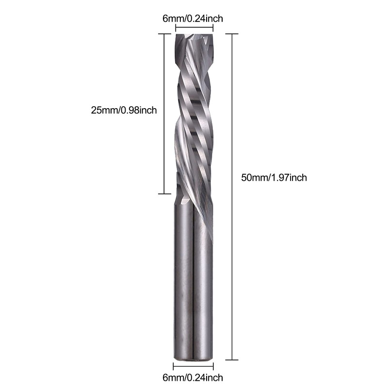HOZLY 6X25mm アップ&ダウン カット2 スパイラルフルート 硬質合金製 ツール カッターfor CNC ルータ 圧縮木材 ビット エンドミル ビット