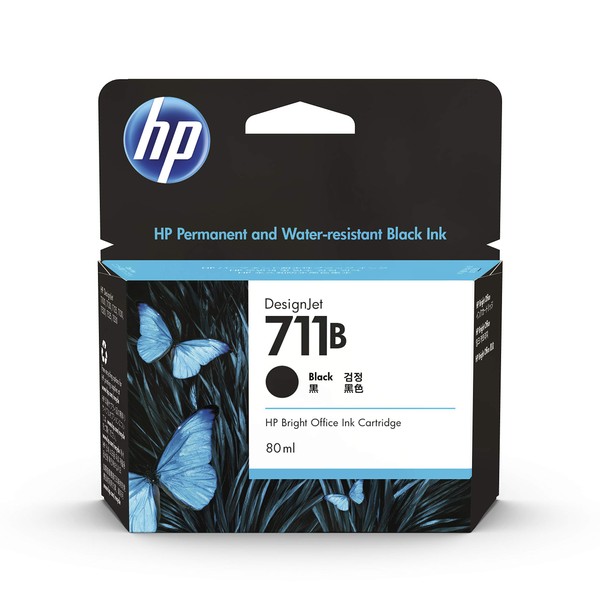 HP 711 CZ133A Black 80-ml Genuine Ink Cartridge, High Capacity, Original HP Ink, for HP DesignJet T120, T125, T130, T520, T525, T530 Large Format Plotter Printers and HP 711 DesignJet Printhead