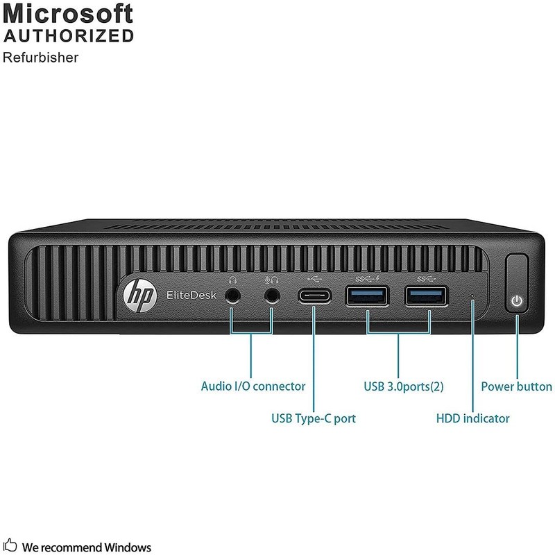 HP EliteDesk 800 G2 Mini is a Micro form factor computer. Micros (also called Mini or Tiny) are one of the smallest size PCs available on the market. HP EliteDesk 800 G2 Mini is very compact and comes with external power supply. This device is easy to upgrade with additional RAM and storage but have little to no expandability. Usually models with this chassis have an optional Wi-Fi and Bluetooth module and an M.2 slot for an SSD.
