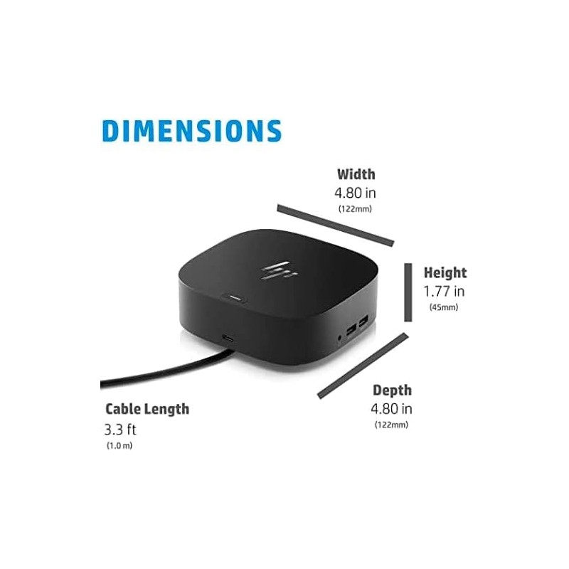 - Small footprint: Reclaim your desk with a compact dock that takes up only 5 x 5 inches of space., Easily manage your commercial HP fleet: Help IT secure and remotely manage your deployed commercial HP notebooks and the dock with advanced network manageability features that include PXE Boot, LAN/WLAN switching, and WoL and MAC Address Pass-Through in all power states.