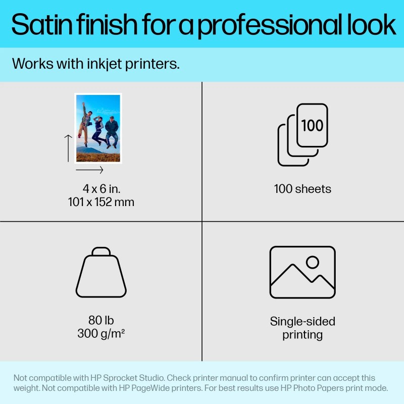 HP White Photo Paper 4x6 Satin Finish Quick Dry Recyclable Professional Quality