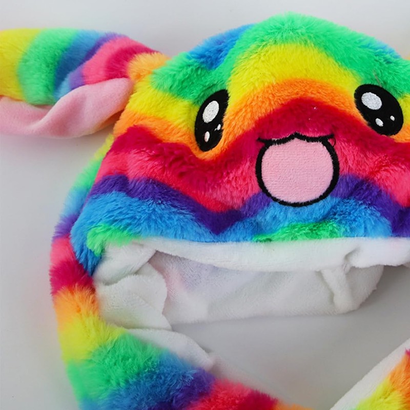 Hpfulseazn Ear Moving Jumping Warm Plush Animal Hats Movable Dancing Ear Flap Hat Earflaps Movable Fluffy Cap(Rainbow Rabbit)