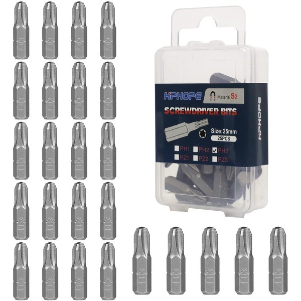 HPHOPE PH3 Screwdriver Bit Set, Phillips #3 Bits 1/4" Hexagon Bit (Length: 1", 25 Pack)