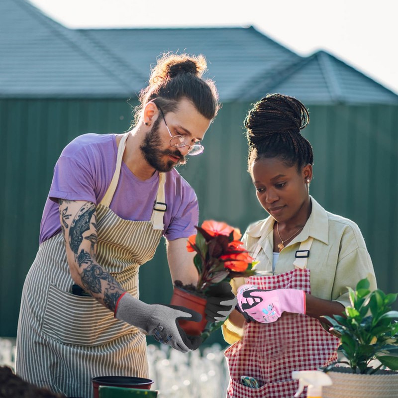 HPHST 3 Pairs of Latex Coated Women's Gardening Gloves, with Optimal Grip and Fine Touch Sensation, Environmentally Friendly Protective Gloves for Household Gardening (Pink, M (Size 8, 3 Pairs))