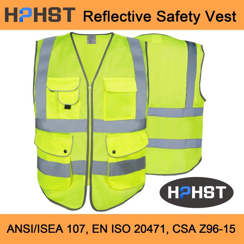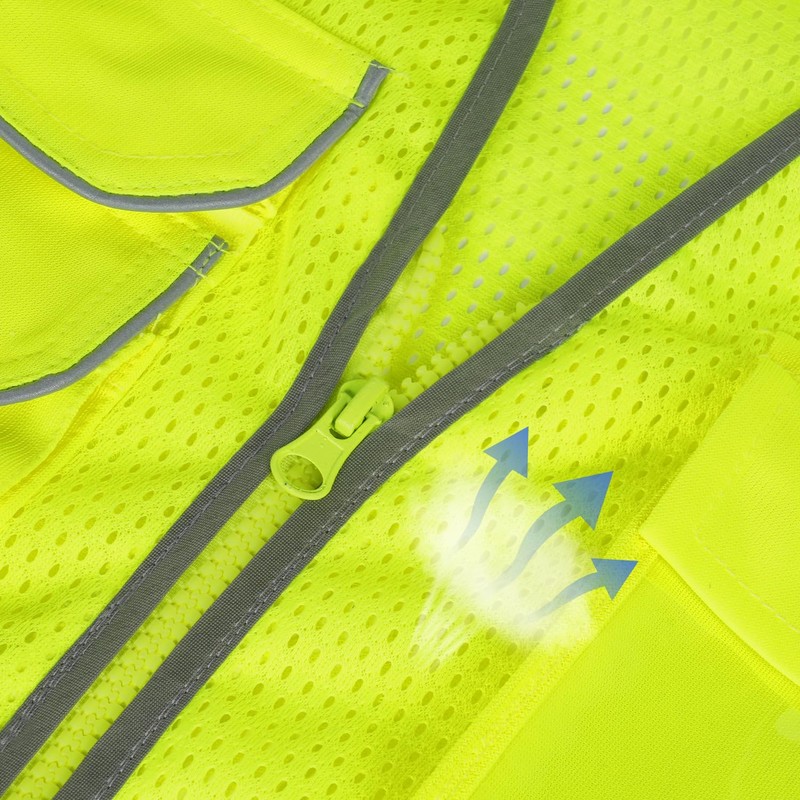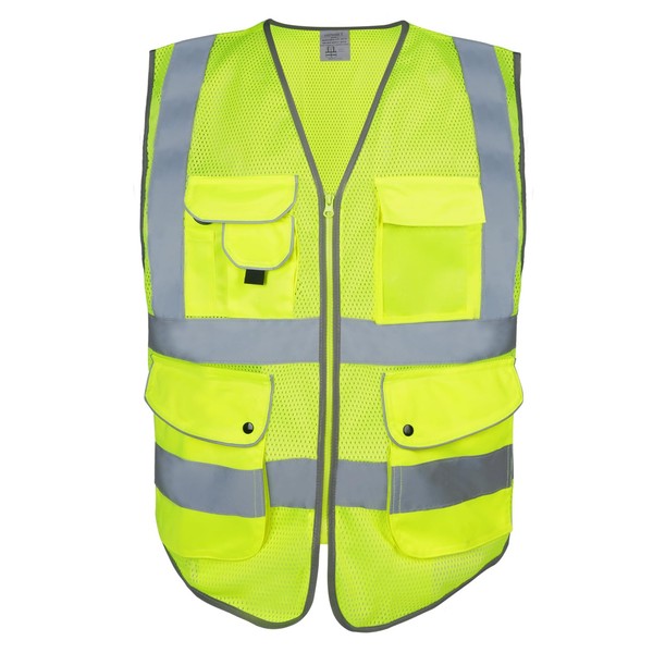 HPHST High Visibility Safety Vest for Men and Women, Cycling Vest with Zip, Reflective Vest, Work Vest, EN ISO 20471, Yellow mesh, XXL